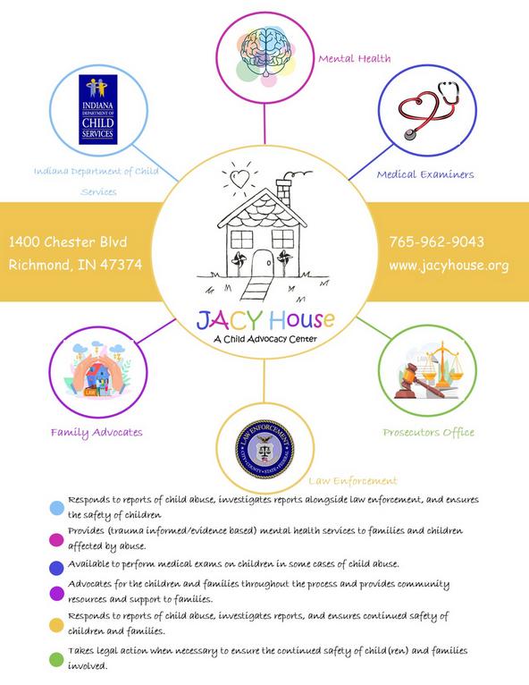 JACY House is a program of the Children's Justice and Advocacy Center, Inc. A 501(c)(3) non-profit agency that opened in 2003 as an alternate process to investigations and prosecutions of child abuse cases.